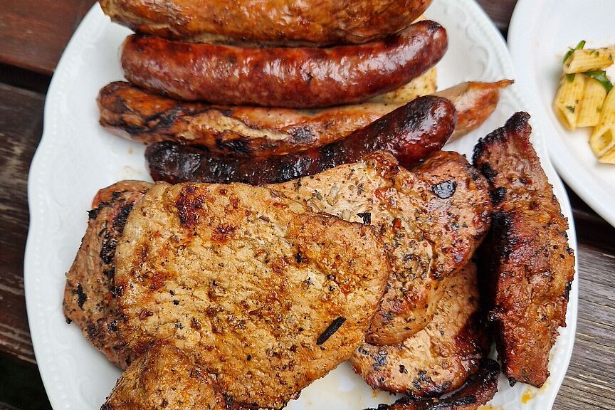 Im zauberhaft gelegen Biergarten waren Tische gedeckt und das brunchen konnte beginnen. Wild, Schwein und Geflügel kamen auf den Teller. Dazu leckerster Nudelsalat, Bratkartoffeln mit Speck und Zwiebeln, und auch die Vegetarier kamen auf ihre Kosten. Gestärkt und mit einem Espresso zum Schluss ging es per pedes weiter nach Springe über die Kaiserallee. Diese stellte die Radfahrenden, vor allem die mit e-bike, vor eine große Herausforderung. Schotter und lediglich eine schmale Spurrinne hatten es in sich. Für geübte Mountainbiker kein Problem, aber bei den schmalspurigen e-bikern gab es den ein oder anderen Ausfall. Die Kaiseralleeverläuft knappe drei Kilometer nordostwärts vom Jagdschloss in Springedurch die Feldmark. Es wachsen dort etliche Kastanien verschiedenen Alters und viele Heckensträucher, wie Schwarzdorn, Schlehe, Holunder oder Feldahorn. Diese Gehölze bieten vielen dort lebenden Tieren einen Lebensraum. Und den Radelnden bieten sie Ruhe pur.